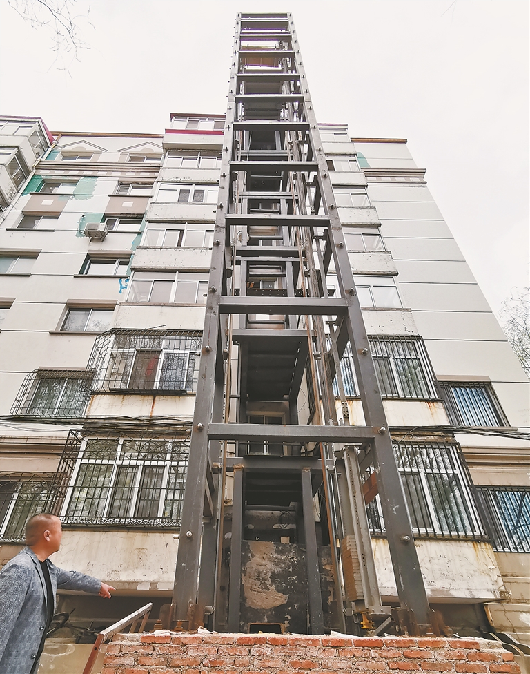 现场有多位老人告诉记者,该小区为大学家属区,目前常住居民以离退休教育工作者居多,其中很多老人腿脚不太好,每天上下楼很困难。2019年政府出台政策,“既有住宅楼加装电梯”工程展开,小区居民高兴得不得了,终于不用犯愁上下楼了。