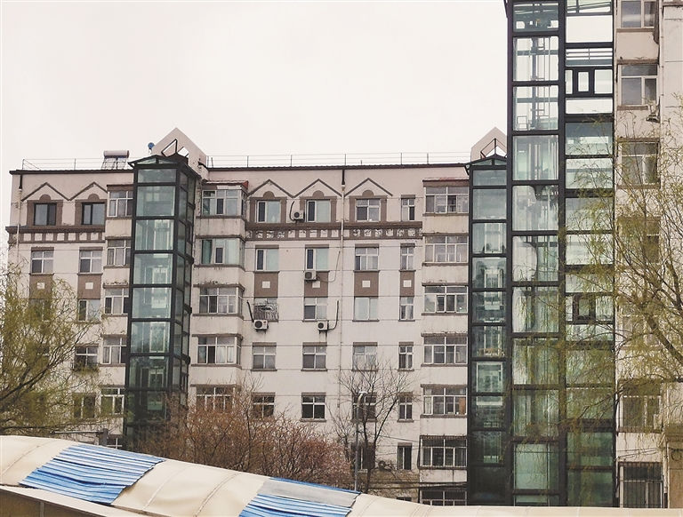 现场,小区居民指着小区的15号楼告诉记者,这栋楼是另一家施工单位安装的电梯,去年9月份才开工,比其他单元要晚好几个月,但当年11月份就完成了主体工程,居民在元旦前就乘上了电梯。现场记者看到,15号楼的几部电梯是玻璃外墙全封闭式的,是透明的可观光设计。
