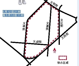 拟定于5月12日21时至5月13日11时,北起文明街、南至文昌街、西起文林街、东至文化街合围区域;