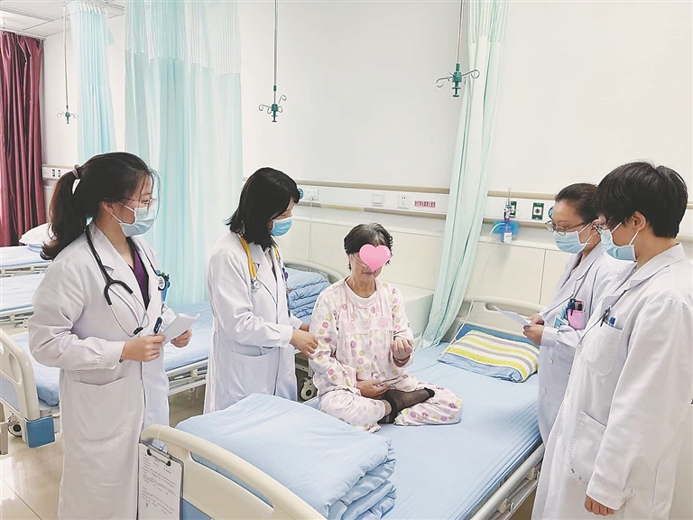 赵阿姨平素有冠心病、慢性心功能不全、高血压、糖尿病、慢性肾功能不全等病史,4月初因急性心力衰竭,在群力院区老年医学科住院康复后不到2周,又因为受凉出现了咳嗽咳痰、呼吸困难难以平卧,再次急诊入院。检查发现赵阿姨因感染再次诱发了“急性左心力衰竭”,情况不容乐观。老年医学科副主任郜旭带领团队精心制定方案,给予积极减轻心脏负荷、抗炎等治疗。赵阿姨第3天可以平卧,呼吸困难明显减轻。