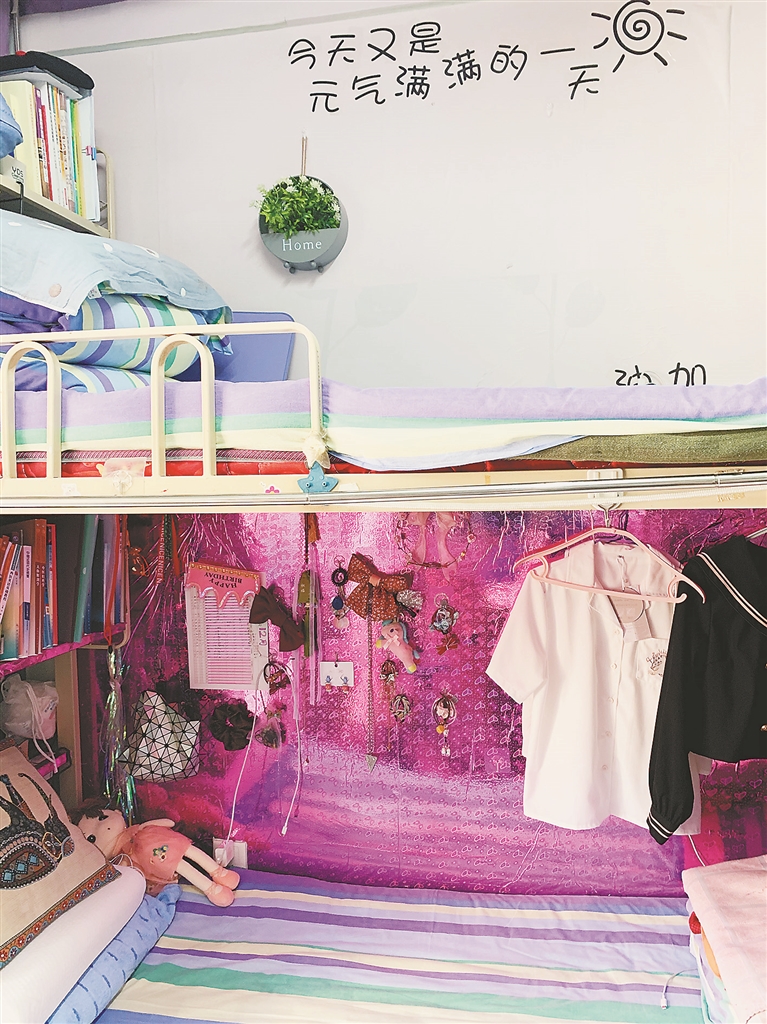 另外,每晚睡前难得的空闲时间,六姐妹总会躺在各自的床上进行一天的“总结会”,复盘当天所学知识点,分享刷题进度,也会互相打气鼓劲儿,疏解备考紧张情绪。