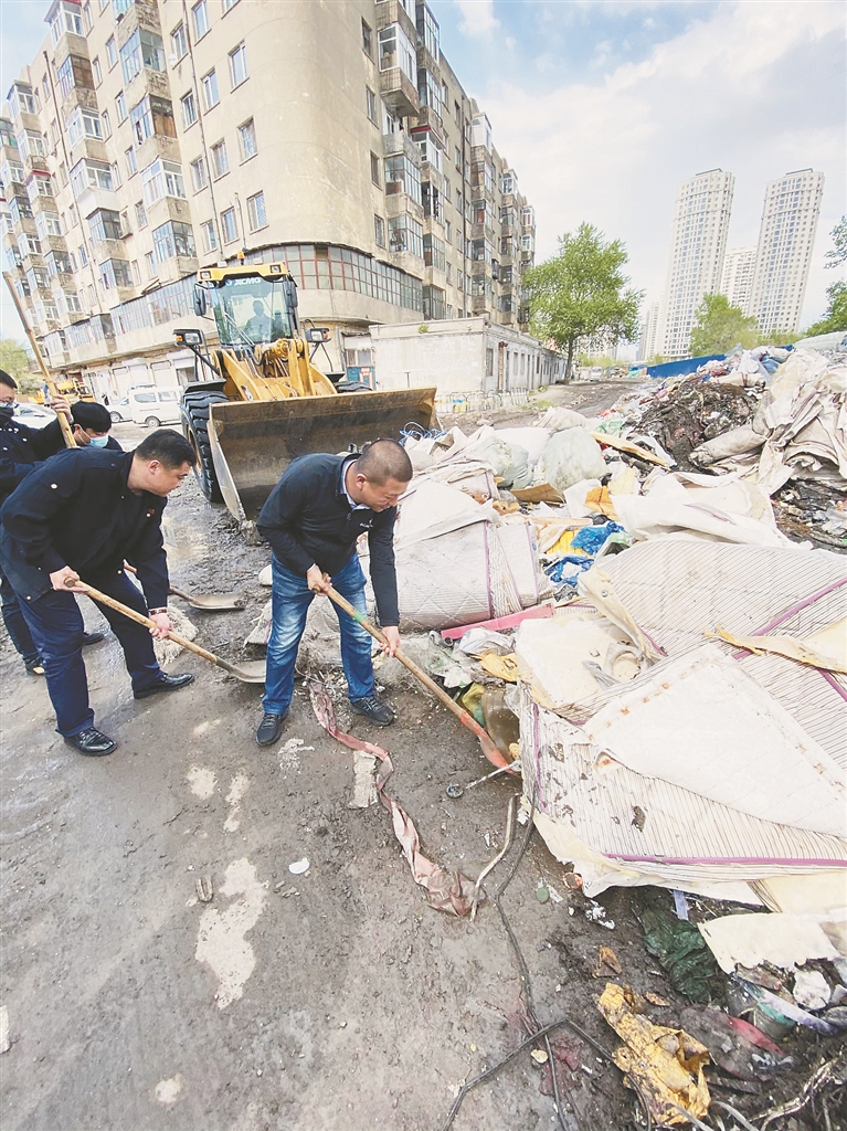 生活报讯 (记者李丹文/摄) 近日,家住哈市道外区迎新二道街的史女士特别开心,因为这几天困扰她及附近居民的难题解决了。原来,史女士家附近因为处于老旧废弃库房交汇的“三不管”区域,这几天突然出现大量废弃垃圾违规偷缷的问题。大量的偷缷垃圾将路堵住,附近居民回家只能绕道,并且随着天气渐热,垃圾发酵的臭味也令居民们不敢开窗。