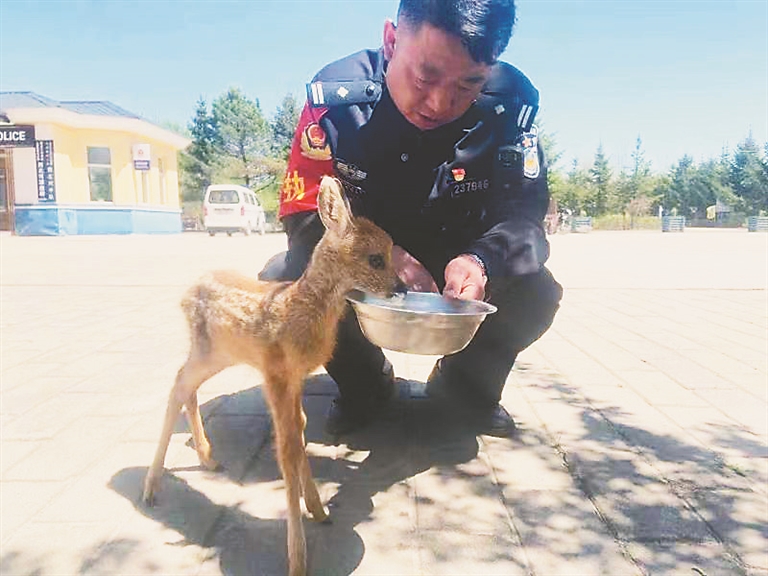接警后,西北河派出所民警迅速赶往居民家中,此时这只动物已被居民抱进屋内。经民警们仔细检查辨认,确定这只动物为国家“三有”保护动物、国家二级保护陆生野生动物——狍子。随后,民警对小狍子的身体进行了仔细检查,其体长将近50厘米,未发现有明显外伤。民警将小狍子抱起后带回了办公室,并到附近商店买来牛奶喂它。由于小狍子刚出生,不适宜放生,于是将其送到建设林场寄养。