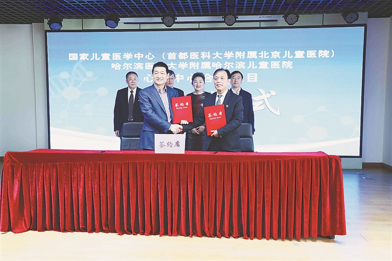 生活报讯 (魏然 唐婷 张琳琳 记者王秋实) 14日,哈尔滨医科大学附属哈尔滨儿童医院与国家儿童医学中心(首都医科大学附属北京儿童医院)心脏中心合作项目签约仪式成功举行,实现哈尔滨市儿童医院与国家儿童医学中心医疗服务的同质化,提升龙江小儿心脏病微创治疗的诊治水平,推动学科向区域最强发展。