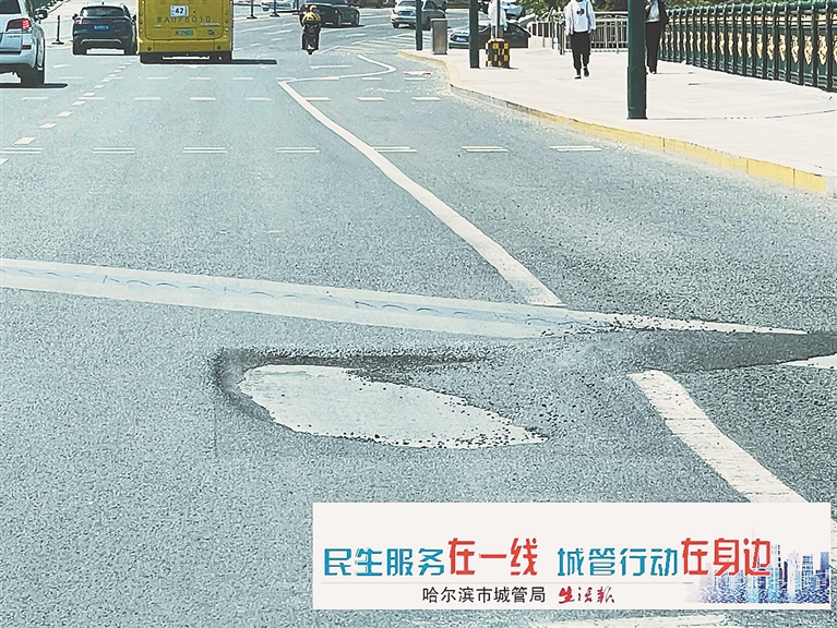生活报讯 (记者李丹文/摄) 近日,由哈尔滨市城管局、生活报联合推出的“民生服务在一线 城管行动在身边”行动热线接到市民赵女士来电,“霁虹桥南岗往道里方向,有一处翻浆区域,行车时咣当响。”