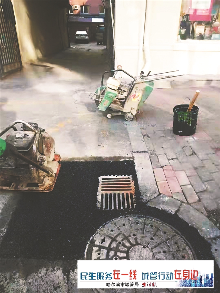 19日,哈市道桥处安排工作人员到现场核实,此处破损的下水井是周边居民私自在排水井边挖掘的倾倒口,道桥部门已进行过多次维修。为确保行人通行安全,方便周边商户倾倒脏水,哈市道桥处再次进行义务维修,并于当日下午维修完毕。