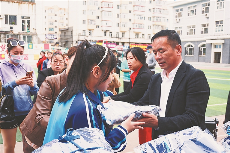 生活报讯 (记者李丹文/摄) 近日,“我为青年办实事 健康守护 情满校园”主题爱心物资捐赠活动举行,哈尔滨市特殊教育学校获赠爱心物资学生用床150张、床品三件套184套、餐桌60张、椅子360把、学生校服288套,总价值近11万元。