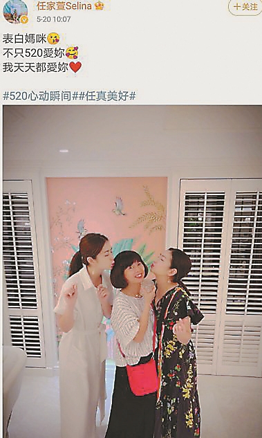 跟爱人相比较“秀恩爱”,还有不少明星选择在这一天表白自己的父母。Selina和妹妹就一起给妈妈送上了亲吻,并配文:“表白妈咪,不只520爱你,我天天都爱你。”