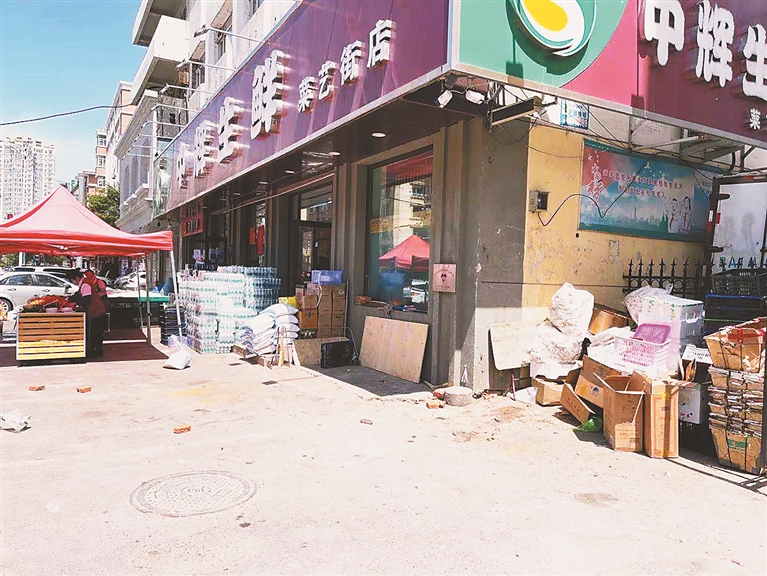 生活报讯 (记者李丹文/摄)21日,由哈市城管局、生活报联合推出的“民生服务在一线 城管行动在身边”行动热线接到市民刘先生来电,在六顺街与菜艺街交口,一生鲜超市门前杂物占道,希望得到处理。