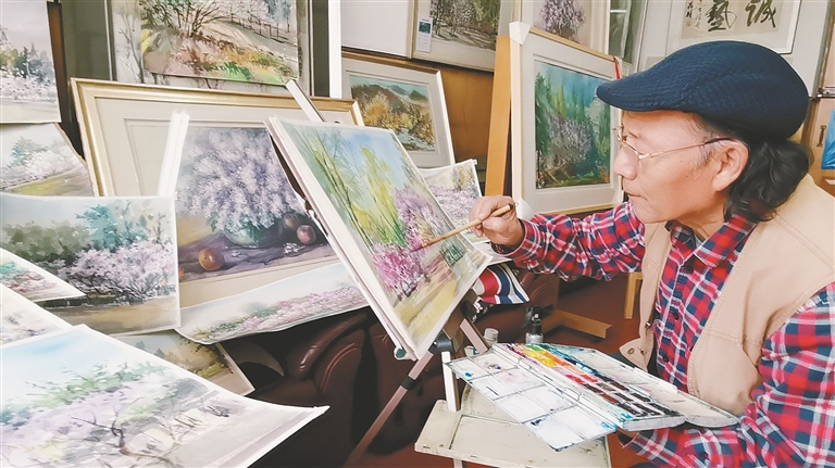 水彩画家贺玉章从1972年到2021年,每年的五月从丁香花含苞待放到盛开,他都会用画笔记录下丁香花的美,49年他从没有间断过,年过古稀的他被誉为“丁香王”。