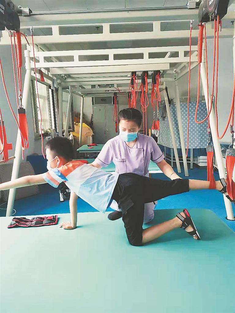 由于出生时大脑缺氧,小宝被诊断为脑瘫,5岁时仍无法站立,辗转多家医院没有一点效果。小宝妈曾有过抱着孩子轻生的念头,偶然间听朋友说起省社会康复医院的儿童康复科治疗效果很好,她决定再试一次。