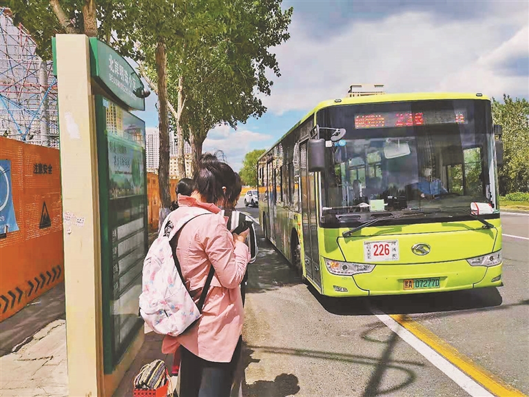 25日上午,记者在哈尔滨松北新区北岸明珠站点,乘坐了由哈药路临时首末站开往江北昆明大街北方向的226路公交车。