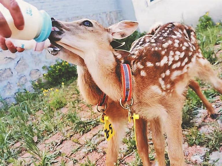 想看小梅花鹿宝宝就去鹿苑中心,它们四五十厘米的“个头”,非常适合孩子们的视角。10只梅花鹿宝宝,年龄小的刚刚出生几天,年龄大的不过20多天,萌萌的非常可爱。饲养人员说,小梅花鹿生下来之后一个多小时就能站起来,第二、第三天自己就会跑跑跳跳。人工驯养的梅花鹿宝宝与人很亲近,它们可以在饲养员的陪伴下,和小朋友们玩耍;到了开饭时间,还可以看小鹿们喝奶的萌态。