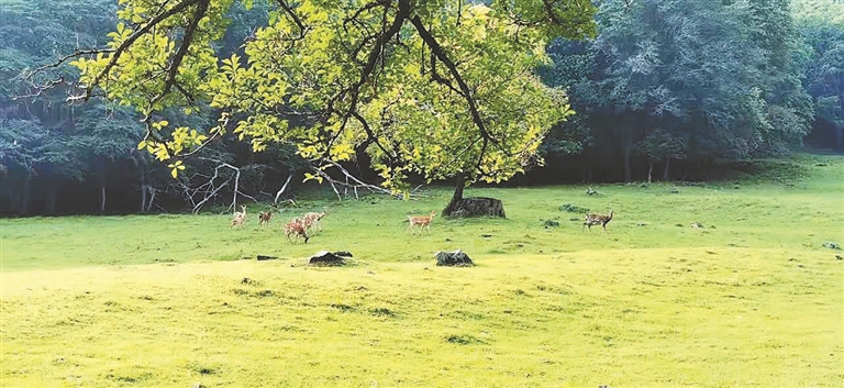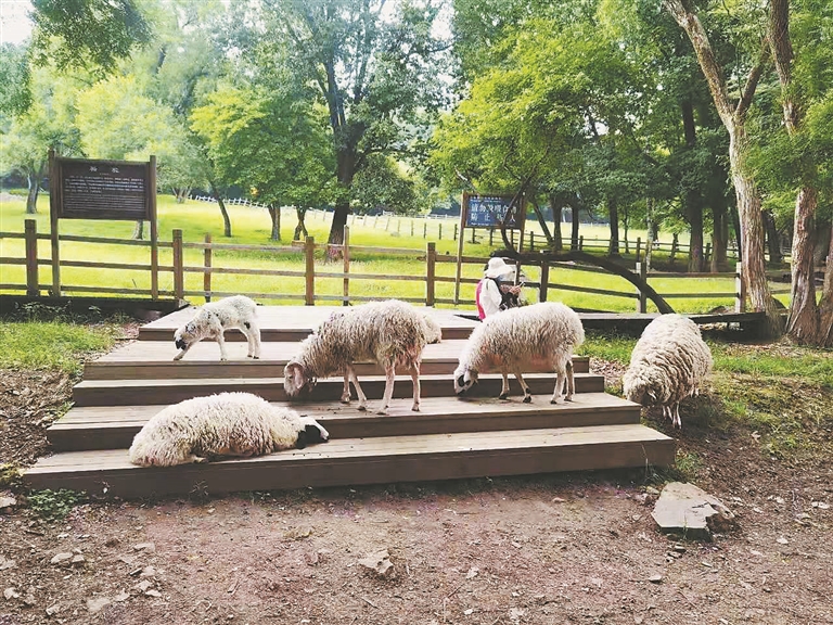 眼下,景区里漫山遍野一片翠绿,高含量的负氧离子让空气变得格外清新,草木清香、山水清韵,平缓的山路非常适合遛娃。一边漫步一边寻觅梅花鹿、马鹿、矮马、牦牛、白黇鹿、羊驼等动物的身影,或是铺上精美的野餐布、摆上景致野餐篮,席地而坐,看着蓝天、品着美味,最惬意的生活就在此刻。不同于动物园里的食草动物们,这里,你只需要一捧玉米、一根胡萝卜或是一些青菜,便可以和它们亲密互动。