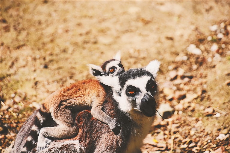 “闲不住”环尾狐猴宝宝