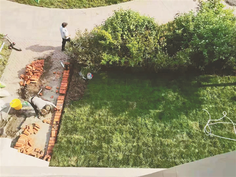 28日,该居民向记者介绍,“20栋1单元102住户把小院面积扩大了,毁掉了灌木绿化,‘五一’小长假期间就开始陆陆续续地整了,破坏了整体园林绿化效果。听说已有居民向市长热线反映了,但几天过去了,还没有动静。希望相关部门要求其对破坏的小区绿地恢复原样。”