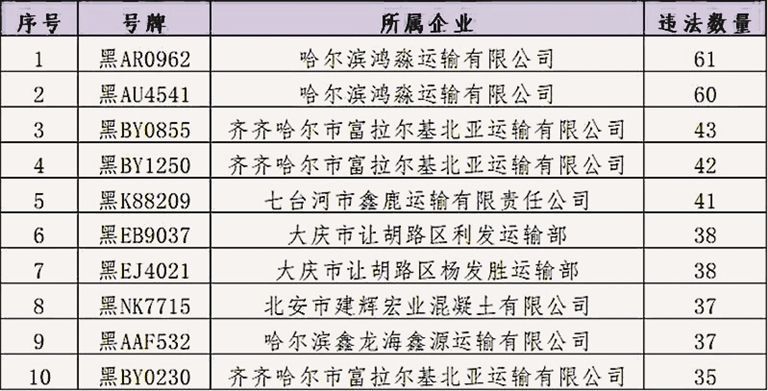 违法总量前十名的货车和所属企业