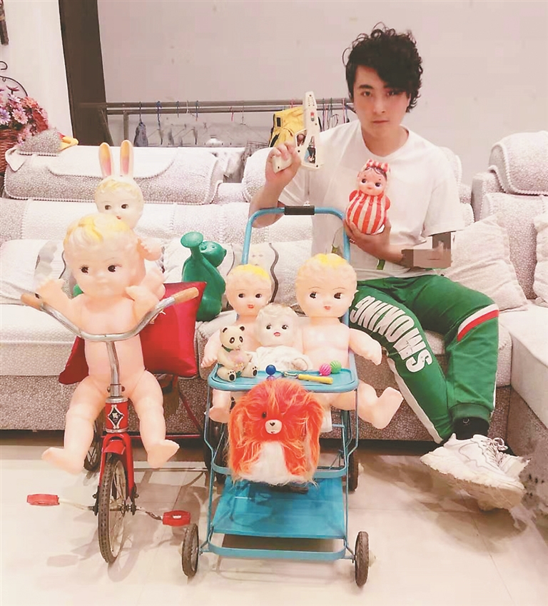 陈玉在青岛从事婚庆行业,时间比较充裕,经常背着黑书包,去古玩市场、旧货市场甚至拆迁工地“淘宝”。他居住的十几平方米小屋,像个小型玩具博物馆,里面有上千个老玩具,就连衣柜里都摆满了娃娃、铁皮小汽车和饼干桶。