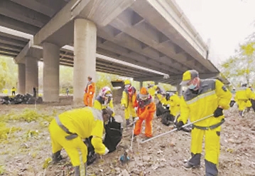 生活报讯 (记者李丹) 近日,在职工街铁路沿线,哈市道里区城管局组织1100余名环卫工人,分为6个作战区域,各负其责、连片作业,清理出6吨垃圾、杂物,环境卫生得到了彻底改变。