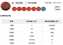 本期双色球二等奖中出163注,单注中奖金额15万余元;六等奖中出844万注。