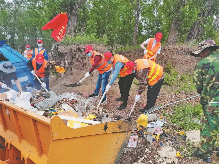 生活报讯 (记者李丹文/摄) 记者从哈市道外区城管局获悉,近日,道外区40余人配备2台钩臂垃圾清运车,来到巨源镇凡兴村,积极开展农村人居环境“整治攻坚月”活动,