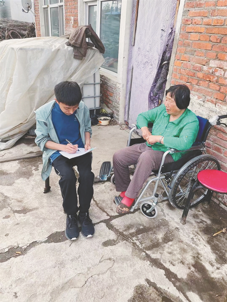 张雷、孙娜夫妇两人均是2级残疾,张雷是肢体残疾而孙娜是精神残疾。由于张雷家没有耕地,腿脚不便的他没有工作能力,妻子孙娜是精神病患者也没有工作能力,所以他们一直靠低保生活。走访的时候,张荣华发现孙娜没有残疾人证,也没有补贴。在了解了他们家的情况后,张荣华主动帮助他们联系医院进行评定并办理相关手续,孙娜被鉴定为2级精神残疾,每月可领取180元的补助。他俩现在的补助加上低保一个月能有800元左右,张雷再做点儿零工,能保证家里的正常开支了。