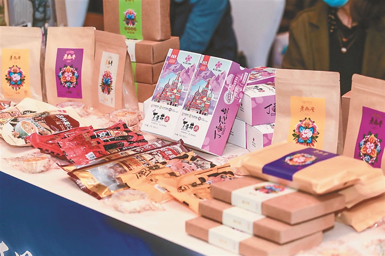 为将哈尔滨的文化旅游资源向来宾更全面地进行展示,主办方还在场外设置文创及特产展区,甜脆的太阳岛大虾糖、香醇沙口的秋林格瓦斯、香而不腻的老鼎丰香肠、回口清爽的冰酒、惟妙惟肖的麦秸画、惬意亲肤的亚麻制品、质感深沉的俄罗斯油画……近30种哈尔滨非遗项目及特色文创商品,引得许多参会嘉宾和游客流连驻足,围观拍照。