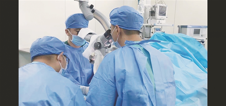 整整8小时,显微镜下操作的医生,手甚至不敢抖一下,这台要求精准高超医术的手术,随时可能因为不小心的抖动而引起失误。在这8个小时,没有人注意到,显微镜下的郝旭光坐成了一座“雕像”,从背后看几乎一动不动。