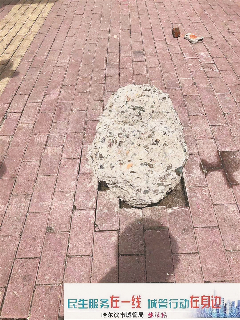 生活报讯 (见习记者刘维娜 记者李丹文/摄) 近日,由哈尔滨市城管局、生活报联合推出的“民生服务在一线 城管行动在身边”行动热线接到市民刘先生来电,在民益街56号院门口的人行道上,有个大石头立在路中央,影响出行,希望得到处理。