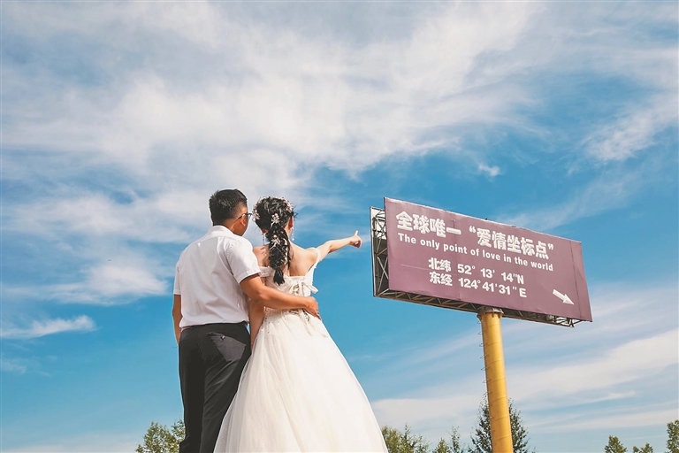 大兴安岭全域旅游中心节点新林区,有一个神奇的坐标点,北纬52°13′14"、东经124°41′31″,与爱情誓言“我爱你一生一世”“一生一世只爱你”高度契合,被人们称作“爱情坐标点”,在全球具有唯一性,因而得名“中国爱情小镇”。
