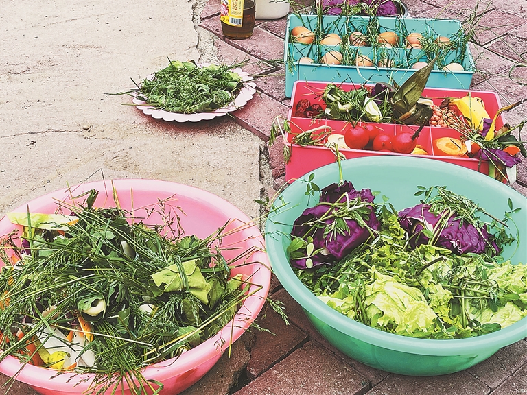 亚洲草食动物散放区的鹿群,在草地休闲区享受到端午自助餐。本杰士堆上挂满了各式各样漂亮的装饰物:粽子、五彩线、葫芦、荷包,节日气氛浓厚。最让鹿群满意的是挂起来的装饰物都是天然食材制作,啥啥都能吃。马鹿、梅花鹿、黇鹿们各取所需尽情享受。马鹿爱吃“五彩线”、梅花鹿喜欢柞树叶皮的水果粽子、黇鹿喜欢红彤彤的“小葫芦”,够不到的也不着急,边吃边找边爬山,吃吃喝喝登高看景,简直不要太happy。