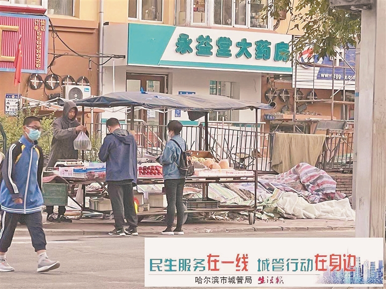生活报讯 (记者李丹文/摄) 近日,由哈市城管局、生活报联合推出的“民生服务在一线 城管行动在身边”行动热线接到市民万先生来电,在香安街与司徒街交口,有商贩占道,商贩旁还有垃圾堆积,影响出行,希望得到处理。