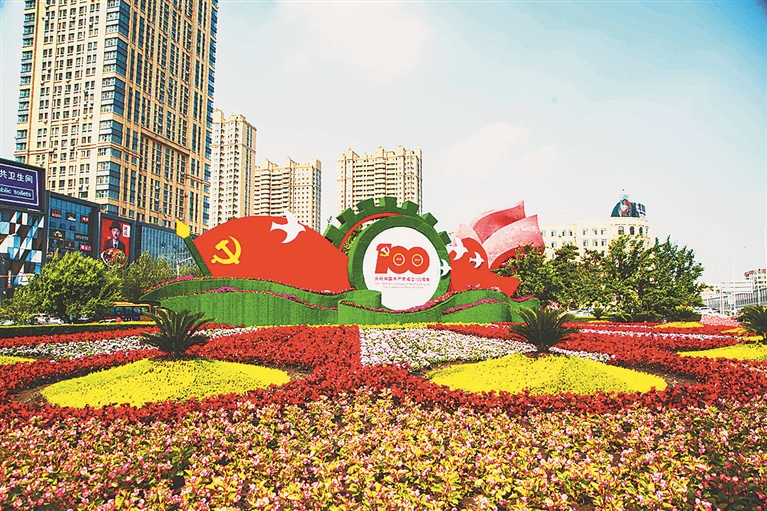 哈市城管局相关负责人表示,自5月中旬起,彩化建设工作全面展开。全市在原有彩化的基础上,对多处既有彩化增加了有关建党一百周年的内容,重点在机场、哈站、哈西客站新增3处主题鲜明的立体彩化景观,融入建党百年元素,搭配五色草图案,展现百年光辉历程。