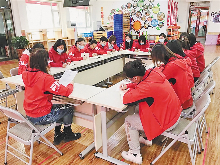 疫情期间党员不惧风雪严寒,卡点值岗体现党员风范。陈媛崧、公文雯老师负责和编导的《灯火里的中国》大合唱唱响时代的乐章。同时开展的党支部党员读书分享活动,让党员坚定信仰的力量。幼儿园还从科学、有效、有针对性的讲座和晨检接待、延时服务等内容,缓解家长工作时间压力,让家长和社会感受到来自幼儿园的温暖。