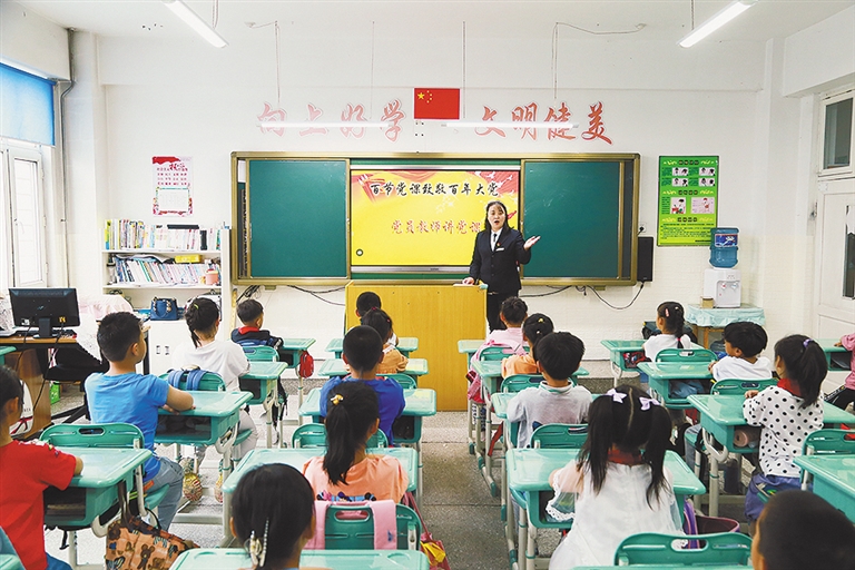 别开生面的“传承红色基因,致敬建党百年”开学第一课,讲党史故事、唱红色歌曲,师生千人同上思政大课,更加坚定孩子们理想信念、涵养家国情怀、厚植爱党爱国思想;“花儿向阳,童心向党”红色故事比赛、“继承红色基因,演绎红色经典”党史儿童剧展演、“党的光辉照我心”主题班队会等沉浸式活动从不同角度不同侧面生动再现共产党人浴血奋战的革命瞬间,重温共产党人走过的峥嵘岁月。学校还充分发挥小手拉大手作用,组织开展了“讲好红色故事,传承红色基因”亲子阅读活动,带动家长共同讲述、演绎红色故事、红色书籍,传递红色主题思想。