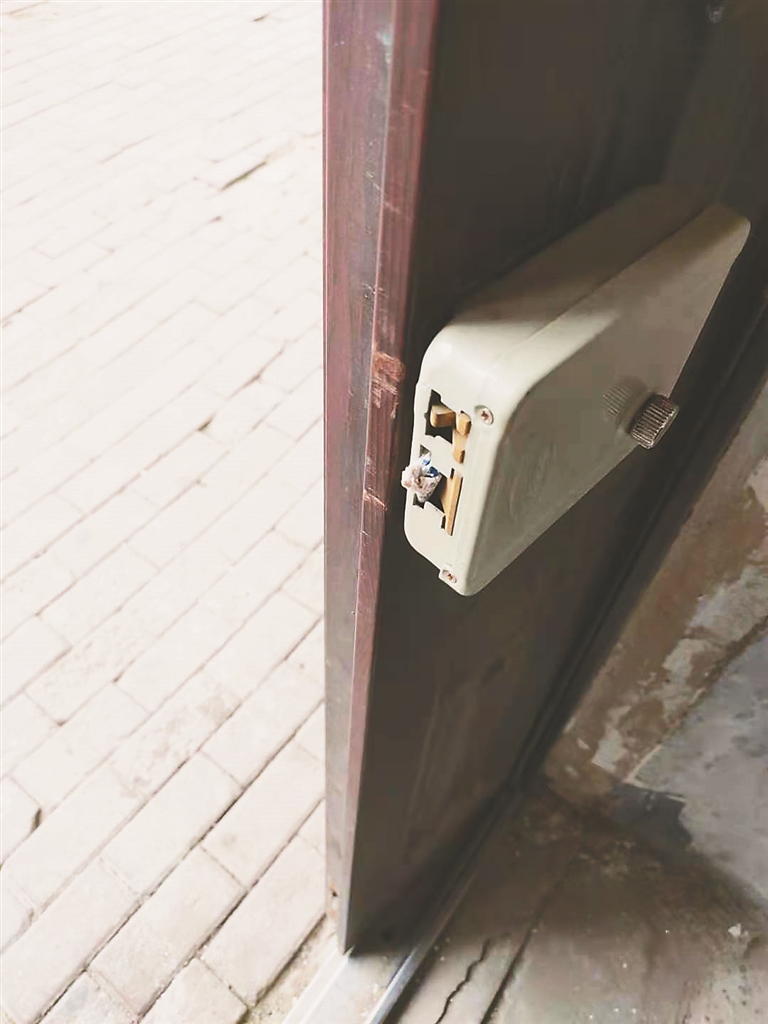 住在该楼的张大娘说:“这纸盒是我扣上的,昨晚有外人进来了,在楼道里方便,今早上这个味呀,熏死人了,这都一天了,根本没人管。就因为门锁不上才这样,经常有人进出楼道,扔烟头、大小便,烦死了。”