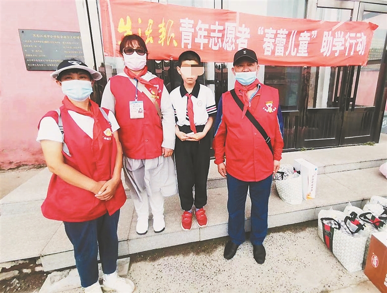11日8时,35名志愿者前往五常背荫河镇。刚进入校园,小蕊(化名)就抱住了生活报青年志愿者团队队长田桂玲,高兴地直呼:“姨,你们来了!”