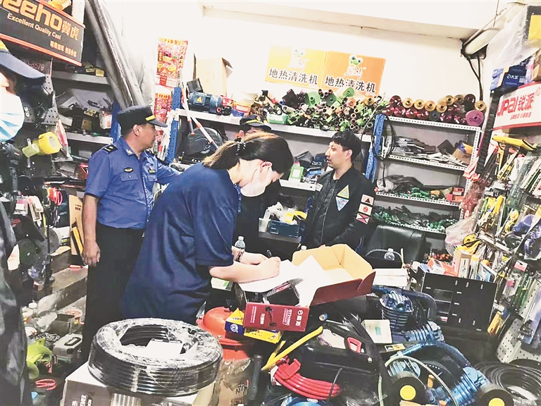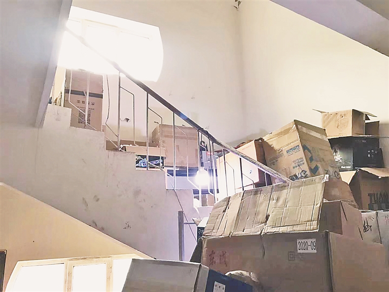 生活报讯 (记者史天一) 不足10平方米的出入口通道摆满各类电动工具,1-3楼的楼梯全部堆满库存货物,仅可容一人侧身通行……哈尔滨市道外区消防大队的执法人员现场向该商家书面责令其2日内搬离。