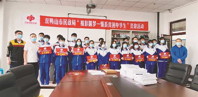 生活报讯 (记者李丹) 6月4日,双鸭山市民政局、市福彩中心走进市第一中学,开展“福彩圆梦——情系贫困中学生”资助活动,为25名贫困学生送去了福彩资助金。