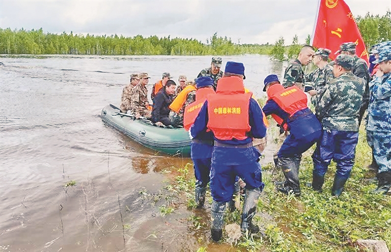 13时许,当时职工正在装填沙袋,由于水势上涨,导致大水漫灌,333人被困孤岛,大兴安岭地区森林消防支队紧急出动75名消防员,携带4艘冲锋艇前往营救。