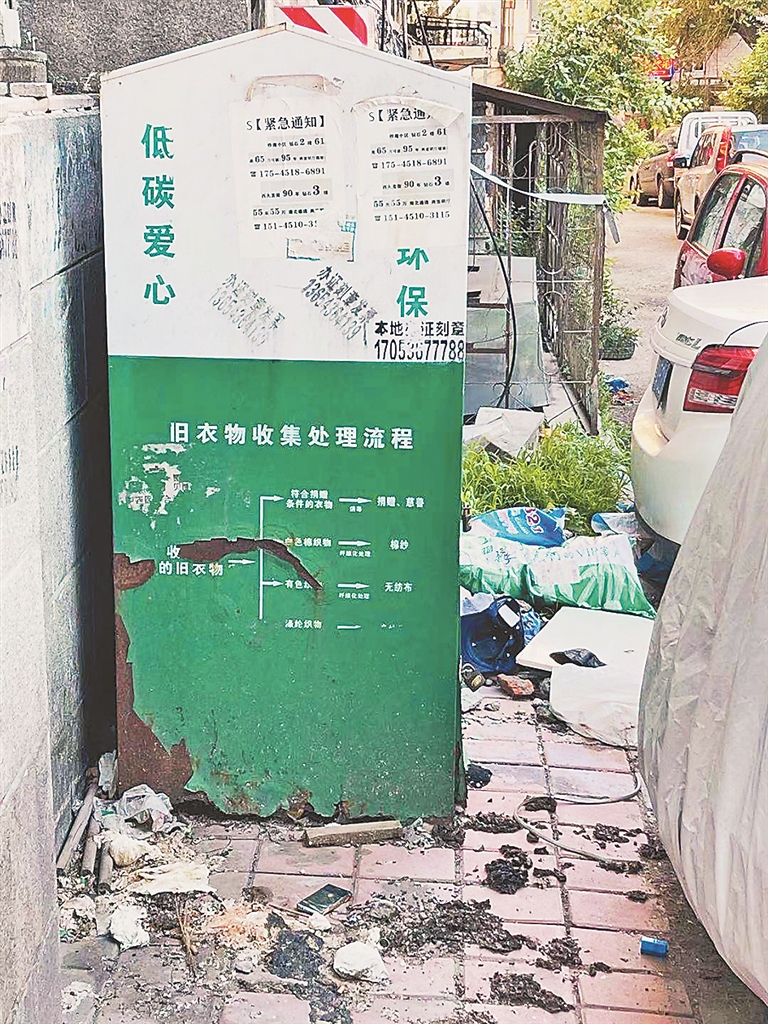 18日上午,记者来到元士街金华大厦西北门前,发现此处有一个绿色旧物回收箱,在箱子周围堆积一定量的垃圾及粪便。“天气越来越热,这味道也是越来越大,希望能尽早处理一下,要不然实在是太不卫生了。”王女士表示。