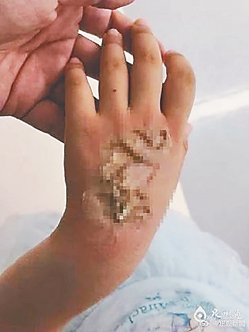 据人民网报道 近日,福建泉州4岁女童依依(化名)所佩戴的电话手表突然发生自燃,孩子的手背皮肤被严重烧伤,为三度烧伤。据依依的父亲黄先生介绍,孩子烫伤的事发生在6月8日下午。在事发前几天,他们将依依带到了外婆家,暂时由外婆照看。事发时,依依正在和三岁的表妹玩耍,家中只有外婆一个大人。