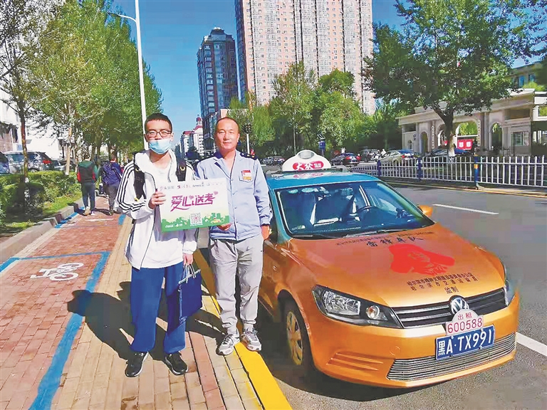 本报高考爱心送考车将考生稳稳送达。 由哈尔滨雷锋车队提供