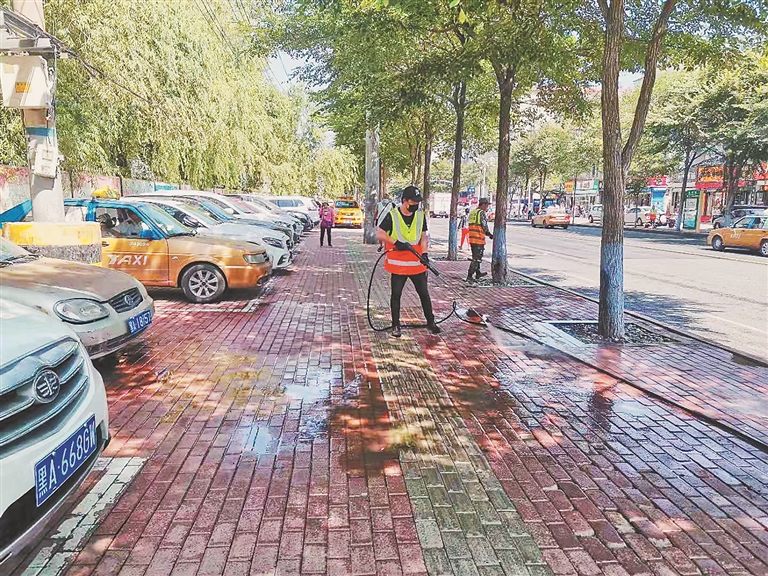 一年一度的中考即将来临,为给广大考生营造一个清洁、舒适、安静的考试环境,哈市环卫保障中心全力做好中考期间环境卫生的同时,根据天气情况进行洒水降温降尘,考场周边人工作业替代机械,避免噪音。生活报记者 李丹 摄