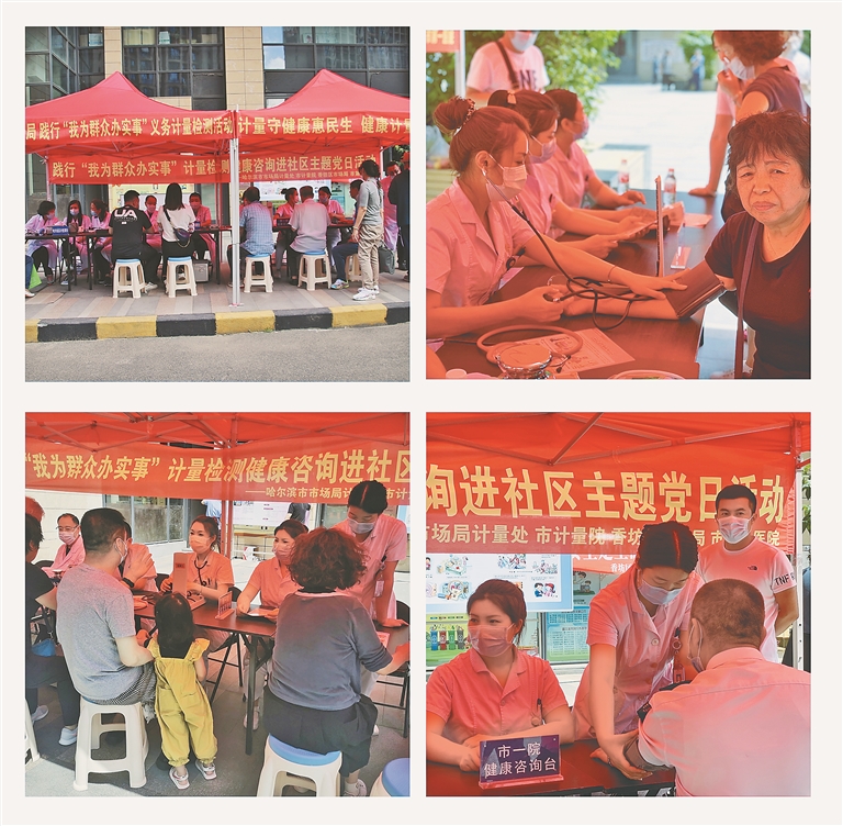 生活报讯 (江丽波 营媛 记者王秋实) 22日,哈尔滨市第一医院联合哈市场局计量处、道里区市场局、哈市计量院走进香坊区上东社区,在小区广场举办义诊进社区主题党日活动。