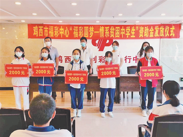 生活报讯 (记者李丹) 23日上午,鸡西市福彩中心开展了“福彩圆梦——情系贫困中学生”资助金发放仪式,为全市35名贫困中学生发放了每人2000元的福彩资助金。