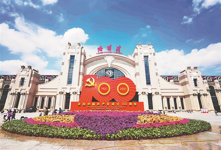 在省委广场、哈站南广场、哈西站广场、文昌广场,新建庆祝中国共产党建党100周年主题花坛5个,营造和谐、宜居、优美、喜庆城市环境,让市民、游客在休闲生活中感受红色文化,汲取精神力量。