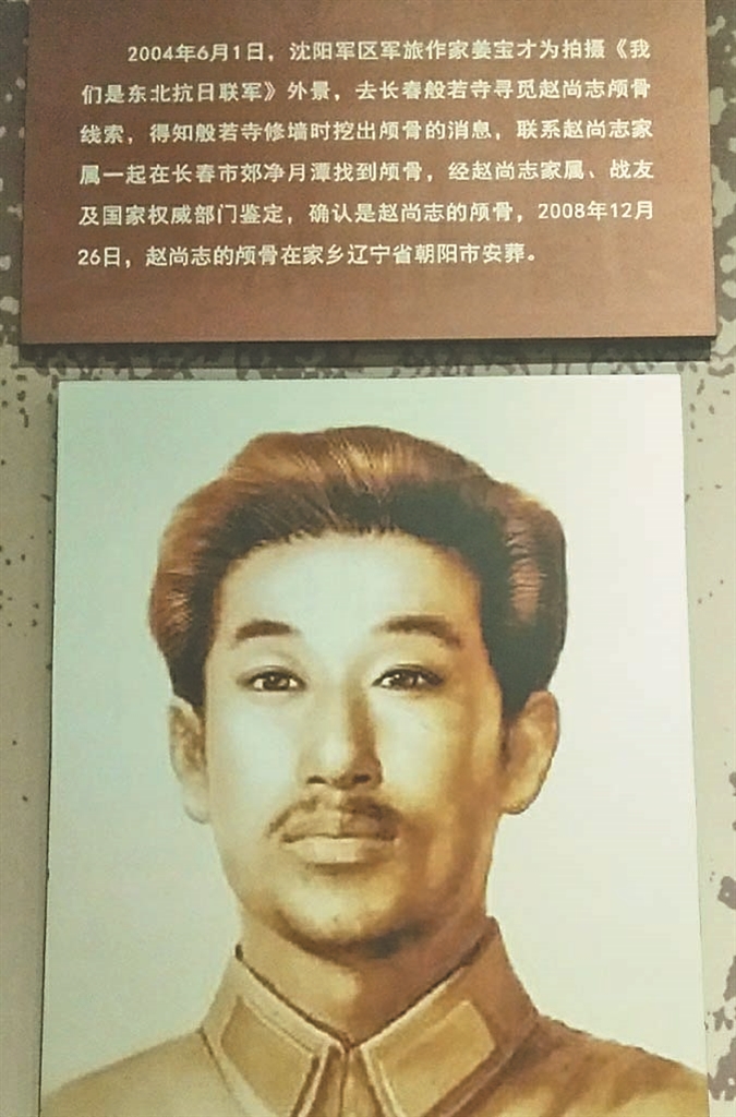 2004年,长春的护国般若寺内出土一具头骨,经鉴定为赵尚志烈士的头骨,在头骨的基础上制作了赵尚志将军的复原头像。