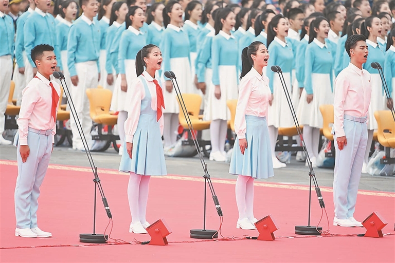 “特别巧!10年前,五年级的我就在学校组织的建党90周年庆祝活动上,参加了向党献词的朗诵表演。没想到,10年后,我竟然能站在天安门广场,在庆祝中国共产党成立100周年大会上朗诵!”中国传媒大学播音与主持艺术专业的大三学生冯琳,连呼自己“太幸运了”。