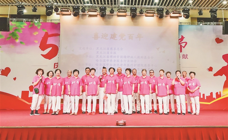 生活报讯 (记者李丹文/摄) 近日,在哈尔滨白渔泡老年医疗护理院里热闹非凡,来自我省的50位老年朋友们载歌载舞,一起庆祝中国共产党成立100周年,共同唱响美好祝福。